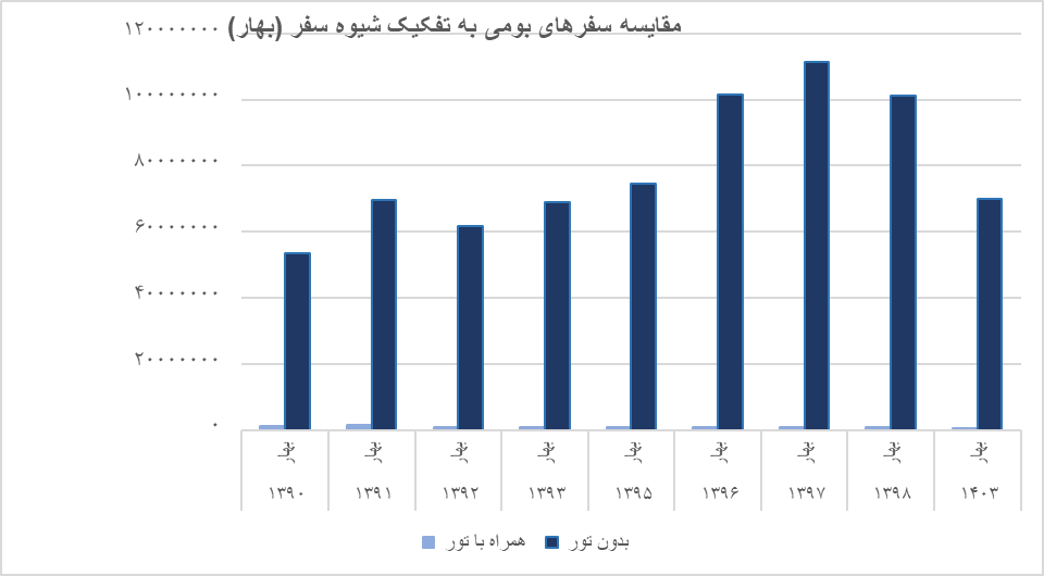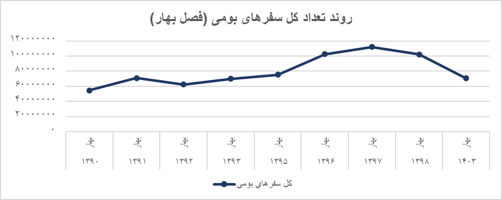 بررسی دادهها نشان میدهد تعداد کل سفرهای بومی در فصل بهار طی سالهای مورد بررسی نوسان داشته است.
