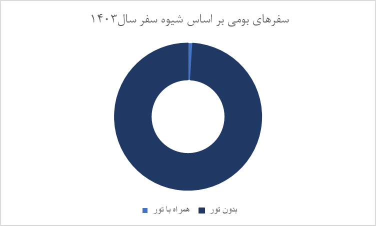 شیوه انجام سفر، یکی از ابعاد مهم در تحلیل رفتار گردشگری خانوارها به شمار میرود. تفکیک سفرهای بومی به سفرهای همراه با تور و سفرهای بدون تور امکان بررسی میزان استفاده از خدمات سازمانیافته گردشگری و نوع برنامهریزی سفر را فراهم میکند.