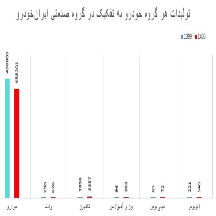 در بخش زیر نموداری را مشاهده میکنید که میزان تولیدات هر گروه در سال ۱۴۰۰ در مقایسه با سال ۱۳۹۹ آورده شده است. همانطور که میبینید